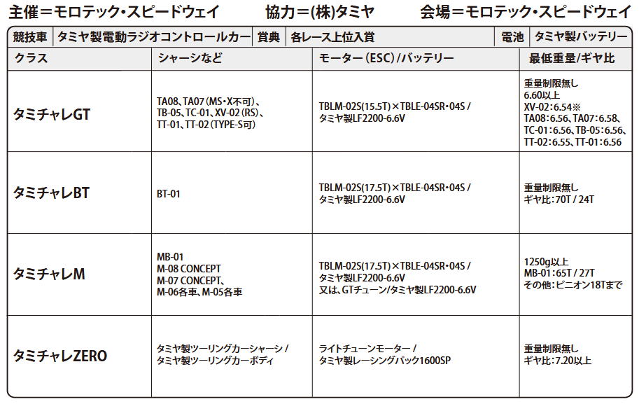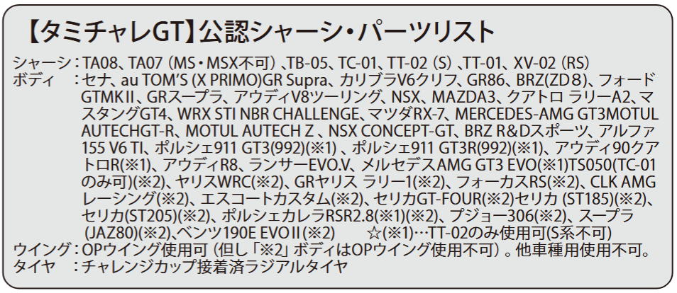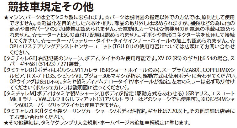 ※ タミチャレラリーはSP.810レーシングセミスリックタイヤとし、最低地上高は14mmとします。